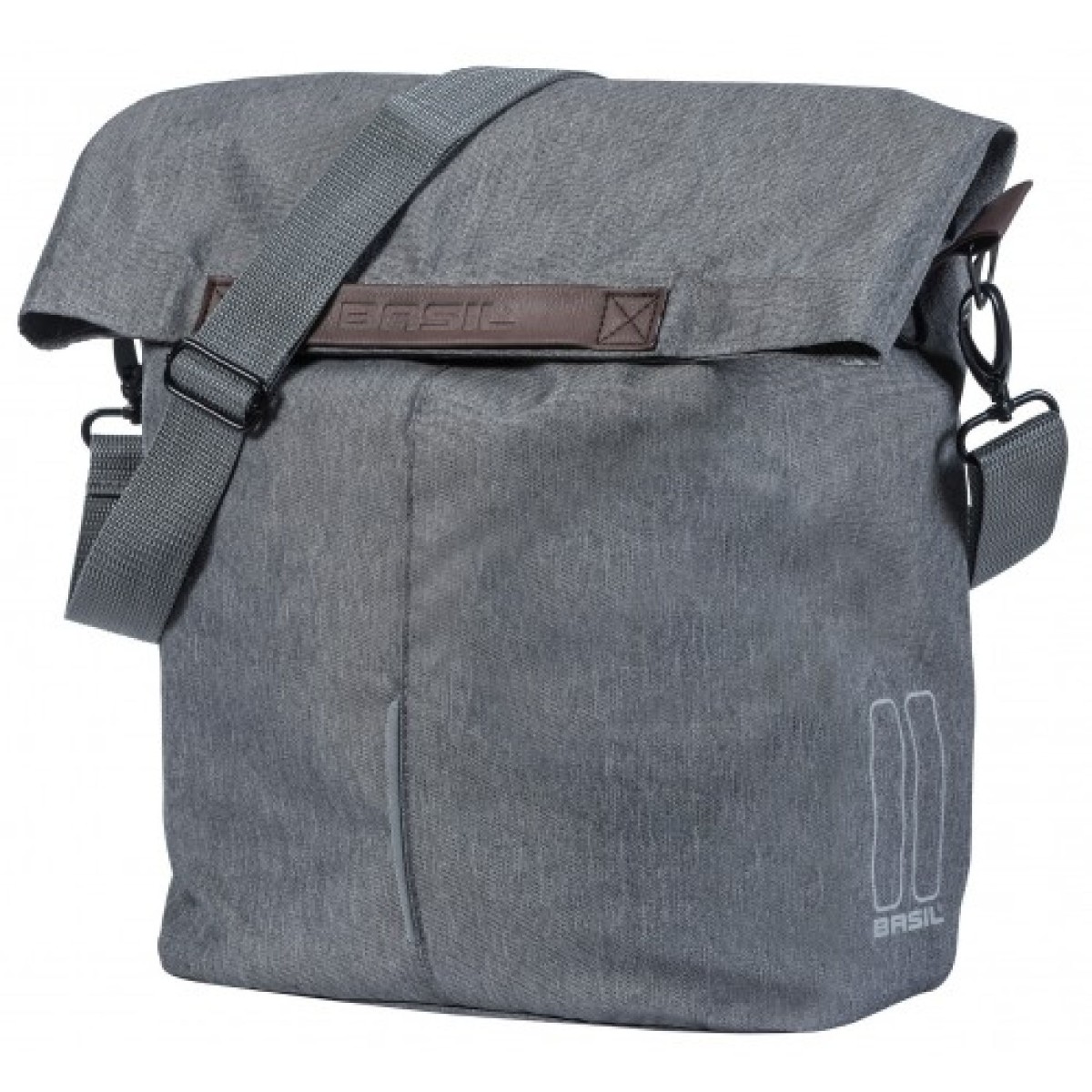 Basil Shoppertas City. Shopper, gemaakt van polyester, waterkerende vouwsluiting met magneet, inclusief afneembare schouderband, vegan leder handgrepen, binnenvak met rits, bevestigingsmogelijkheid LED, Hook-On System, reflectie op alle zijden, inhoud: 14-16L, Grey Melee.