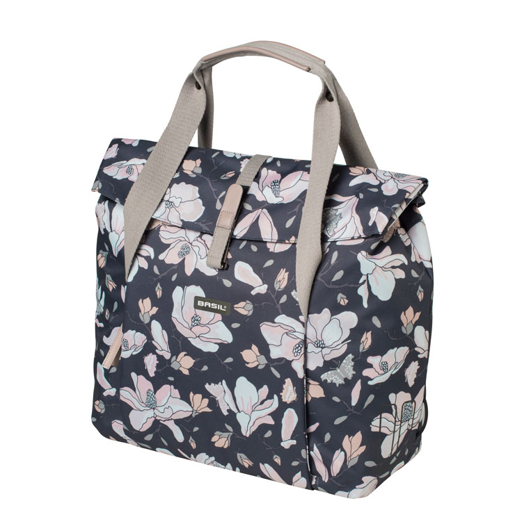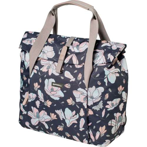 Basil Magnolia Shopper. Fietsshopper, waterdicht (IPX 3), gemaakt van polyester, met vouwsluiting inclusief waterkerende rits, binnenvak, voorvak, hengsels, binnenvoering, bevestigingsmogelijkheid LED, Hook-On System, reflectie, inhoud: 18L, Pastel Powders.