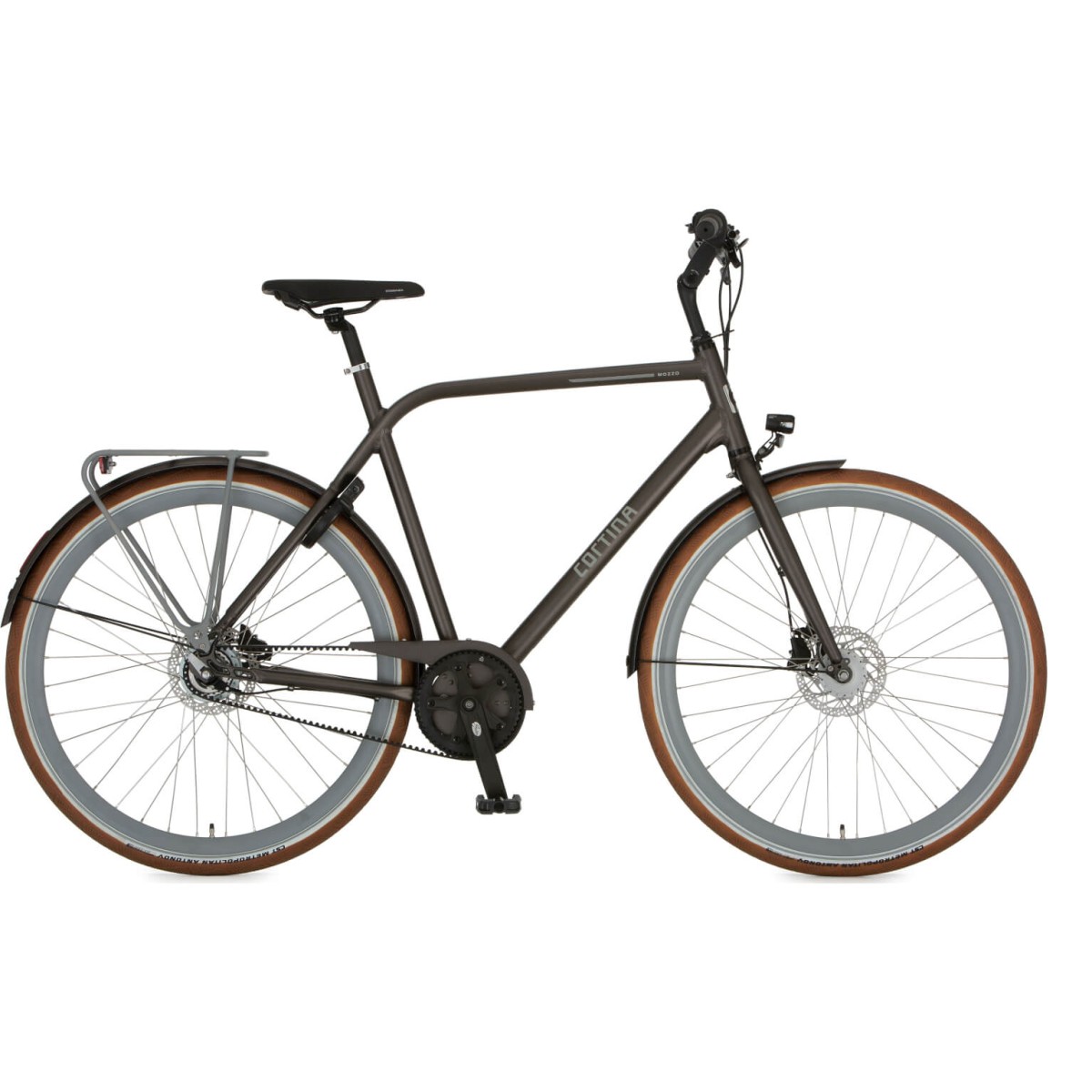 Cortina Mozzo herenfiets in framemaat 61cm. Kleur: After Dark Matt. Uitgerust met achter een Shimano Nexus 7-traps versnellingsnaaf met een hydraulische schijfrem en voor een Shimano naafdynamo met een hydraulische schijfrem. Opvallende details: aluminium frame, Gates beltdrive – type CDN en ILU achterverlichting. Kleurnummer: MGSW 89166 Matt.