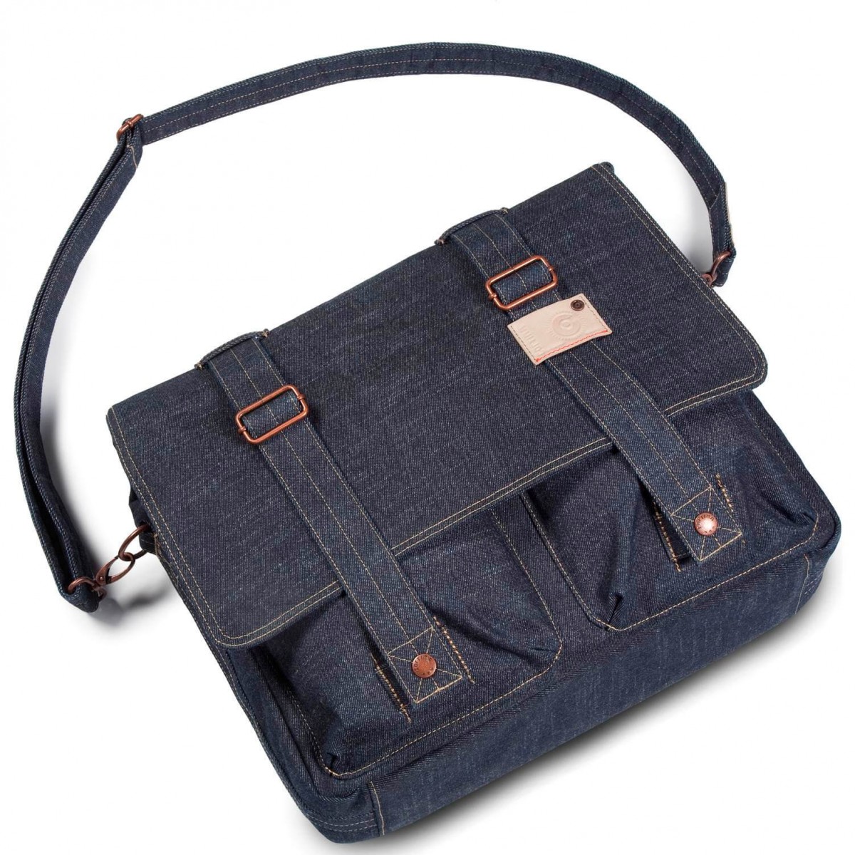 Cortina Schoudertas Kansas denim. De Cortina Kansas Messenger bag is door de opbergvakken en een apart vak voor een laptop/tablet ideaal om veel mee te nemen onderweg! En met de ge?????????????ntrigeerde band vervoer je de tas veilig op de voordrager van je Cortina transportfiets. Deze tas in denim-uitvoering is door de stoere look ook erg geschikt voor de heren. Waterafstotend, Anti-inregen sluiting, 15 inch laptop vak