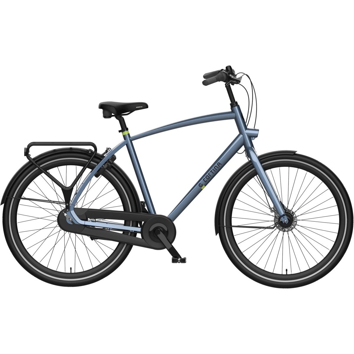 Cortina Tide herenfiets in framemaat 57 cm. Kleur: Aegean Blue. Uitgerust met achter een Shimano Nexus 7-traps versnellingsnaaf met rollerbrake en voor een Shimano naafdynamo met rollerbrake. Kleurcode: 09000-10558.
