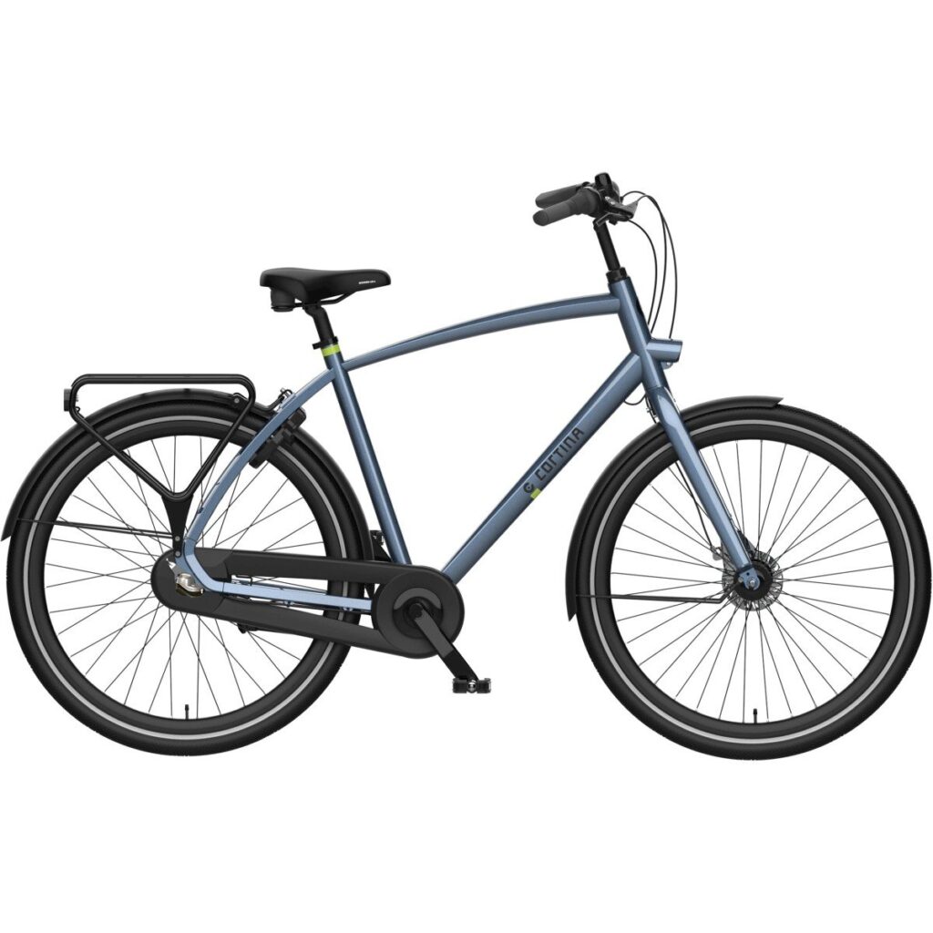 Cortina Tide herenfiets in framemaat 57 cm. Kleur: Aegean Blue. Uitgerust met achter een Shimano Nexus 3-traps versnellingsnaaf met rollerbrake en voor een Shimano naafdynamo met rollerbrake. Kleurcode: 09000-10558.
