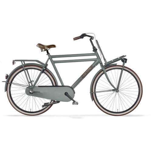 Cortina Transport U4 herenfiets in framemaat 56cm. Kleur: Muted Sage Matte. Uitgerust met achter een Shimano Nexus 3-traps versnellingsnaaf met terugtraprem en voor een standaard naaf. Opvallende details: aluminium frame, stuurslot, voordrager.