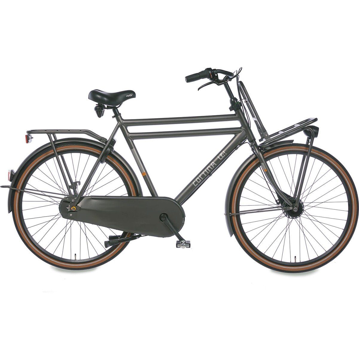 Cortina Transport U4 Solid herenfiets in framemaat 61cm. Kleur: Eclips Black Matte. Uitgerust met achter een Shimano Nexus 7-traps versnellingsnaaf met rollerbrake en voor een Shimano naafdynamo met rollerbrake. Opvallende details: aluminium frame, stuurslot, voordrager. Kleurnummer: MGSG 62759 Matte.