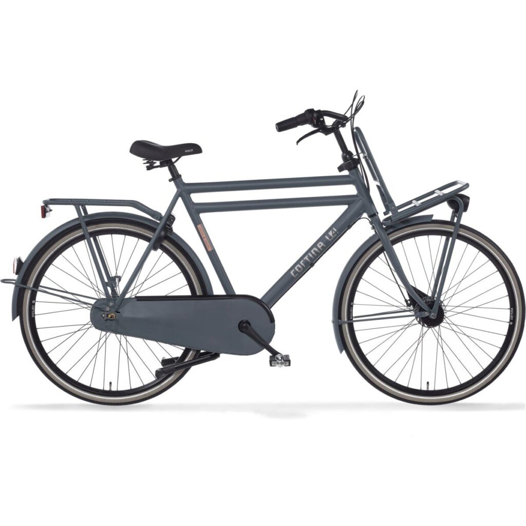Cortina Transport U4 herenfiets in framemaat 50cm. Kleur: Mouse Grey Matte. Uitgerust met achter een Shimano Nexus 7-traps versnellingsnaaf met rollerbrake en voor een Shimano naafdynamo met rollerbrake. Opvallende details: aluminium frame, stuurslot, voordrager. Kleurnummer: UGSW 77545 Matte.
