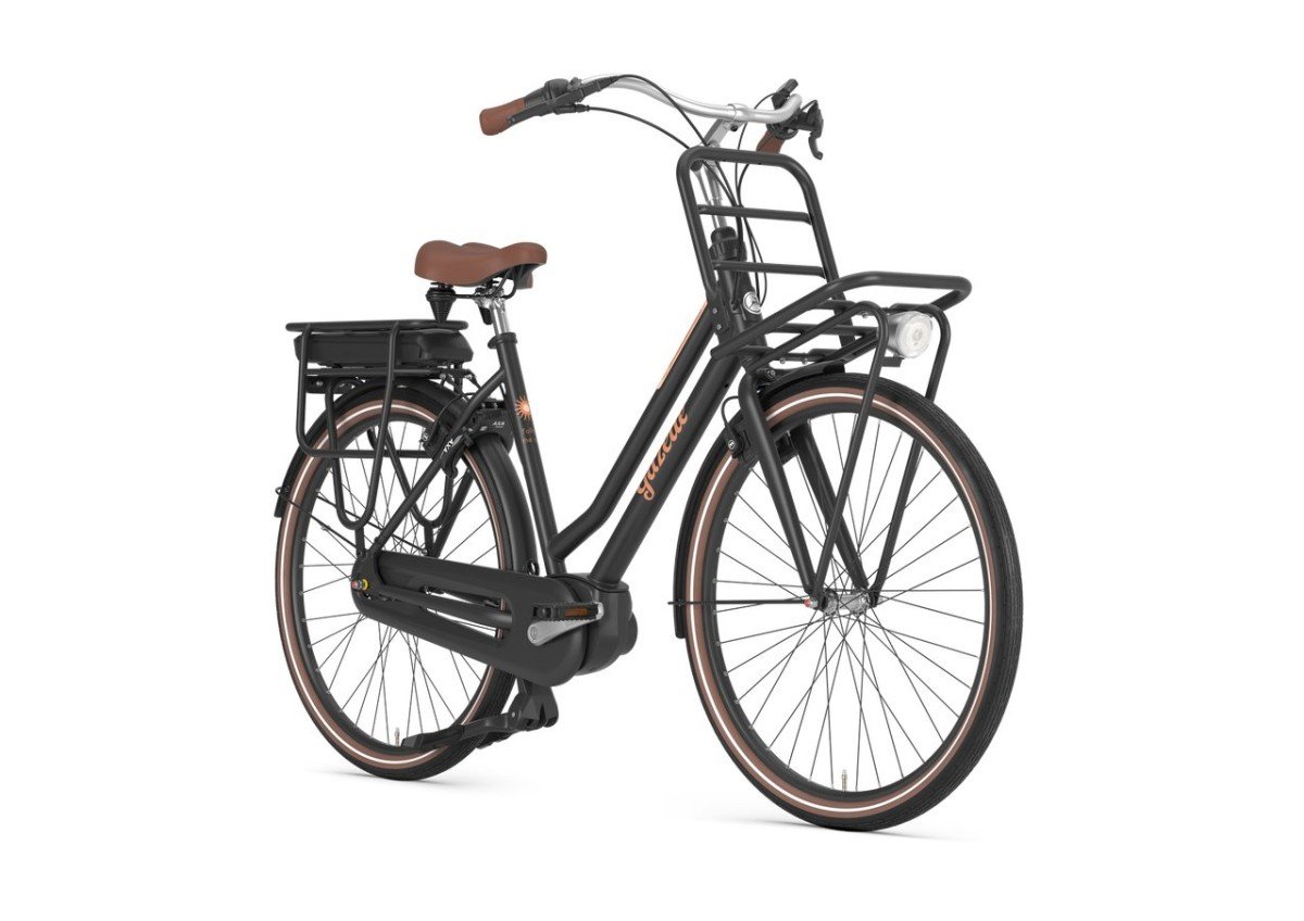 De Miss Grace C7 is zo’n fiets waarop je gezien mag worden. Naast het stylish design gooit deze e-bike hoge ogen op het vlak van comfort en gebruiksgemak. Op de voor- en achterdrager neem je al je bagage gemakkelijk mee. De dubbele pootstandaard en stuurblokkering maken het bepakken eenvoudig. De fiets is bovenal stevig gebouwd en kan dus tegen stootje.